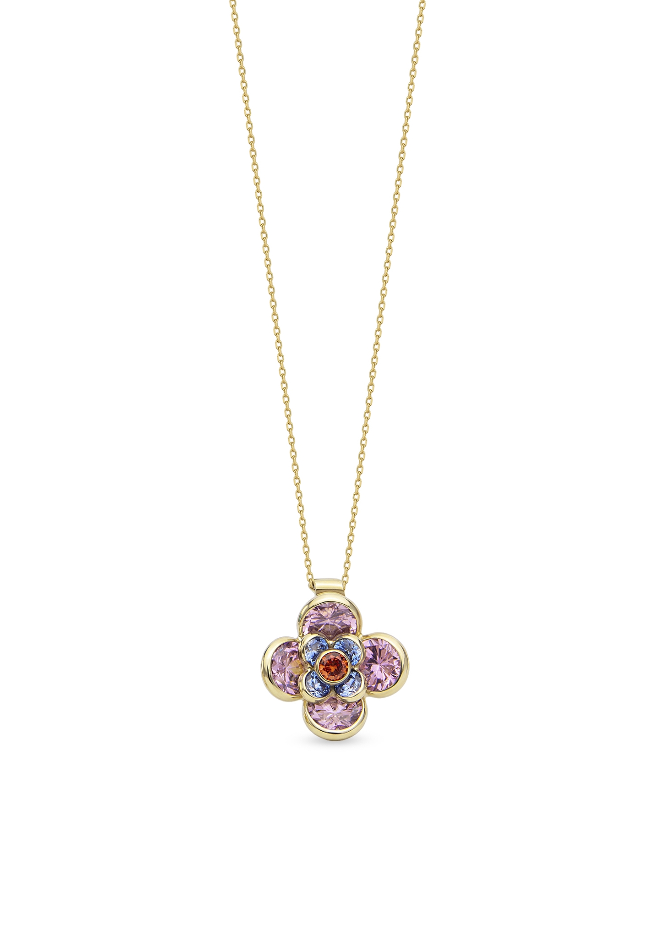 Rengin ve formun dengeli uyumundan doğan Caliora Kolye, Orena Jewelry’nin modern mücevher anlayışını ikonik bir tasarımda buluşturur. Çiçekten ilham alan formu; merkezde yoğunlaşan canlı tonlar ve etrafını saran yumuşak renk geçişleriyle derinlik kazanır. 14 ayar altının sıcak ışıltısı, taşların enerjisini zarif bir çerçevede tamamlar.