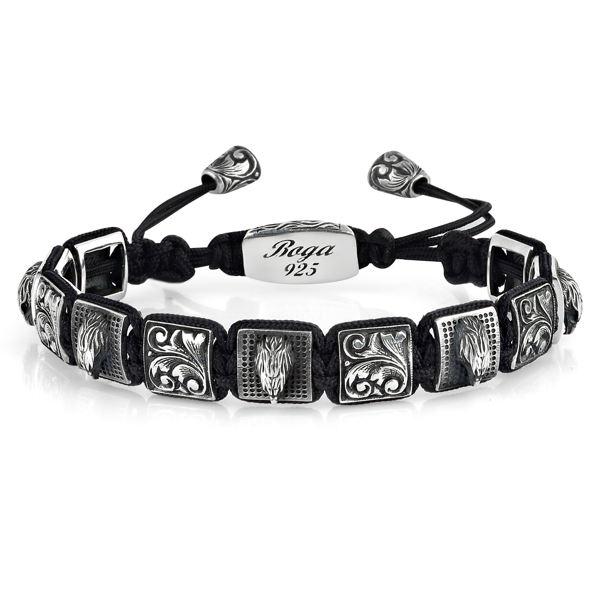 925 ayar gümüş, el oyması kalem işçilikli, zirkon taşlı, kartal figürlü makrome bileklik