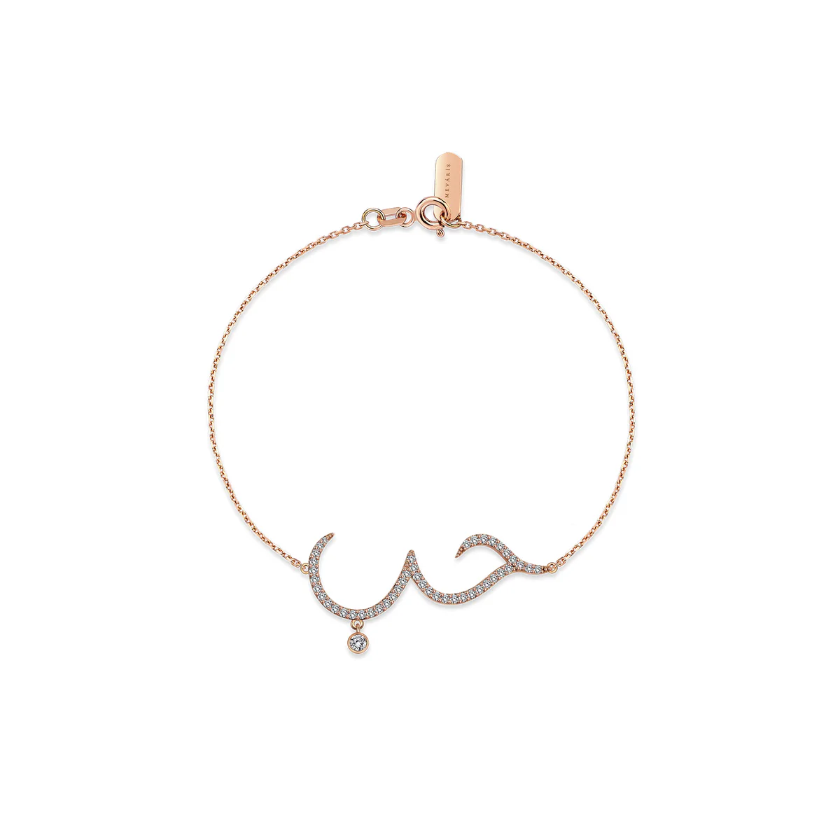 Her dilde farklı şekilde söylense veya yazılsa da, aşk bizi bir araya getiren en güçlü duygudur. Arapça 'hubb' kelimesinden (aşk anlamına gelir) ilham alınarak tasarlanan bu 18 ayar pembe altından yapılmış pırlanta bileklik, bileğinizi zarif bir şekilde saracak şekilde üretilmiştir.