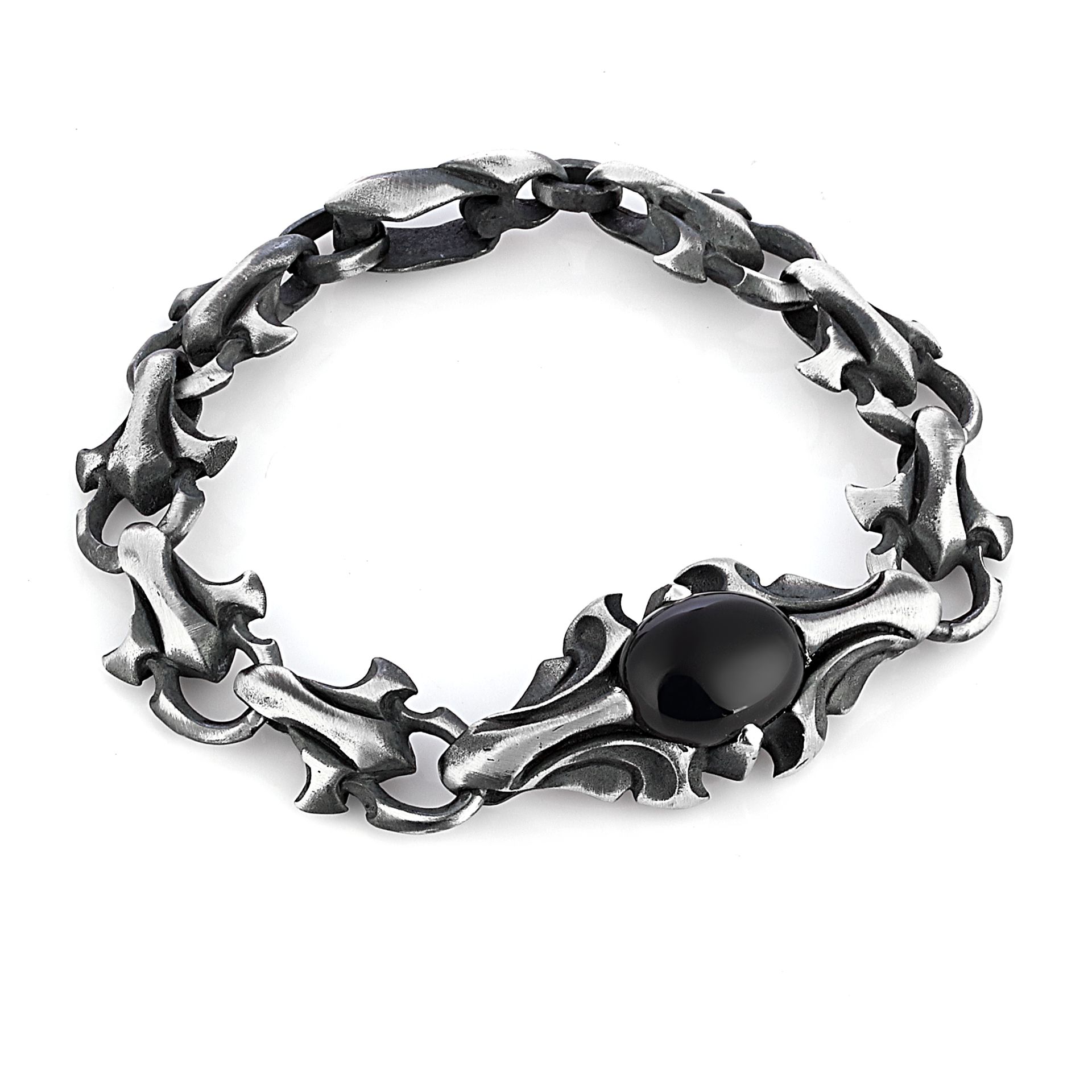 925 ayar gümüş, oniks taşlı şövalye zincir bileklik