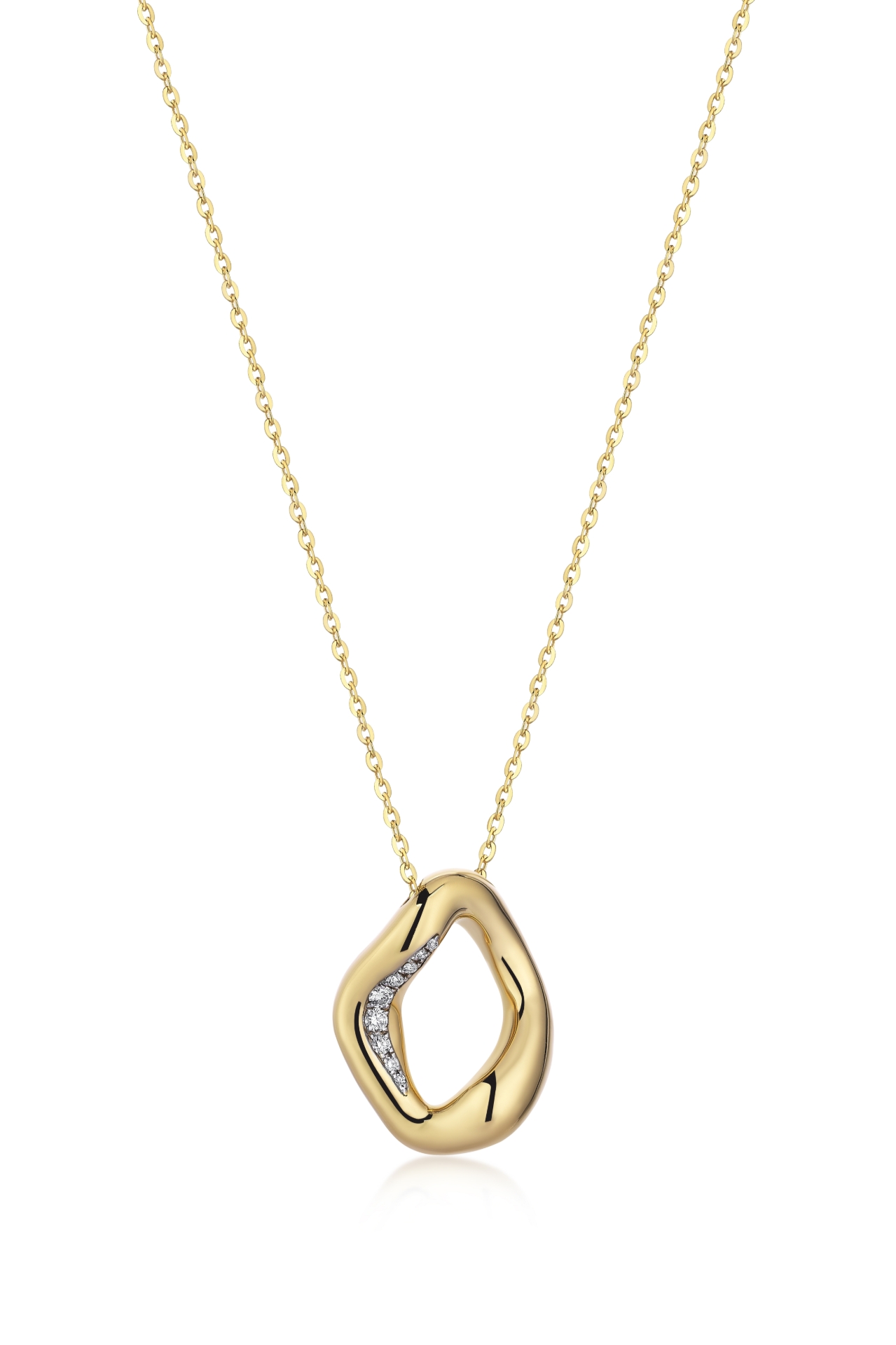 Mini Stream Sarı Altın Pırlanta Kolye, Odyssey Koleksiyonu'nun zarafetini ve inceliğini daha minimal bir formda sunar. Bu altın kolye, hayatın sonsuz yollarında yapılan destansı bir yolculuğun simgesi olarak tasarlandı. Stream Kolye'nin küçük versiyonu olan Mini Stream Sarı Altın Pırlanta Kolye, zarif ve göz alıcı tasarımıyla her kadının kişisel macerasını ve keşiflerini sembolize eder. Bu lüks ve minimal parça, modern mücevherin en zarif örneklerinden biridir. Kıvrımlı ve amorfik hatları, zamansız bir estetiği ve sofistike bir dokunuşu bir araya getirir. Altın ve pırlantaların mükemmel uyumu, kolyenin her ayrıntısında kendini gösterir.