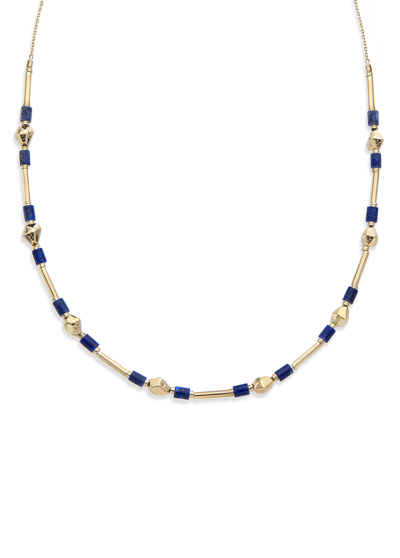 Gece tonlarının derinliğinden ilham alan Nocturne Kolye, lacivert taşların güçlü karakteri ile altının sıcak ışıltısını sofistike bir dengede buluşturur. Geometrik altın detaylar ve ritmik dizilim, tasarıma modern ve mimari bir ifade kazandırırken; koyu mavi tonlar zamansız ve etkileyici bir görünüm sunar.