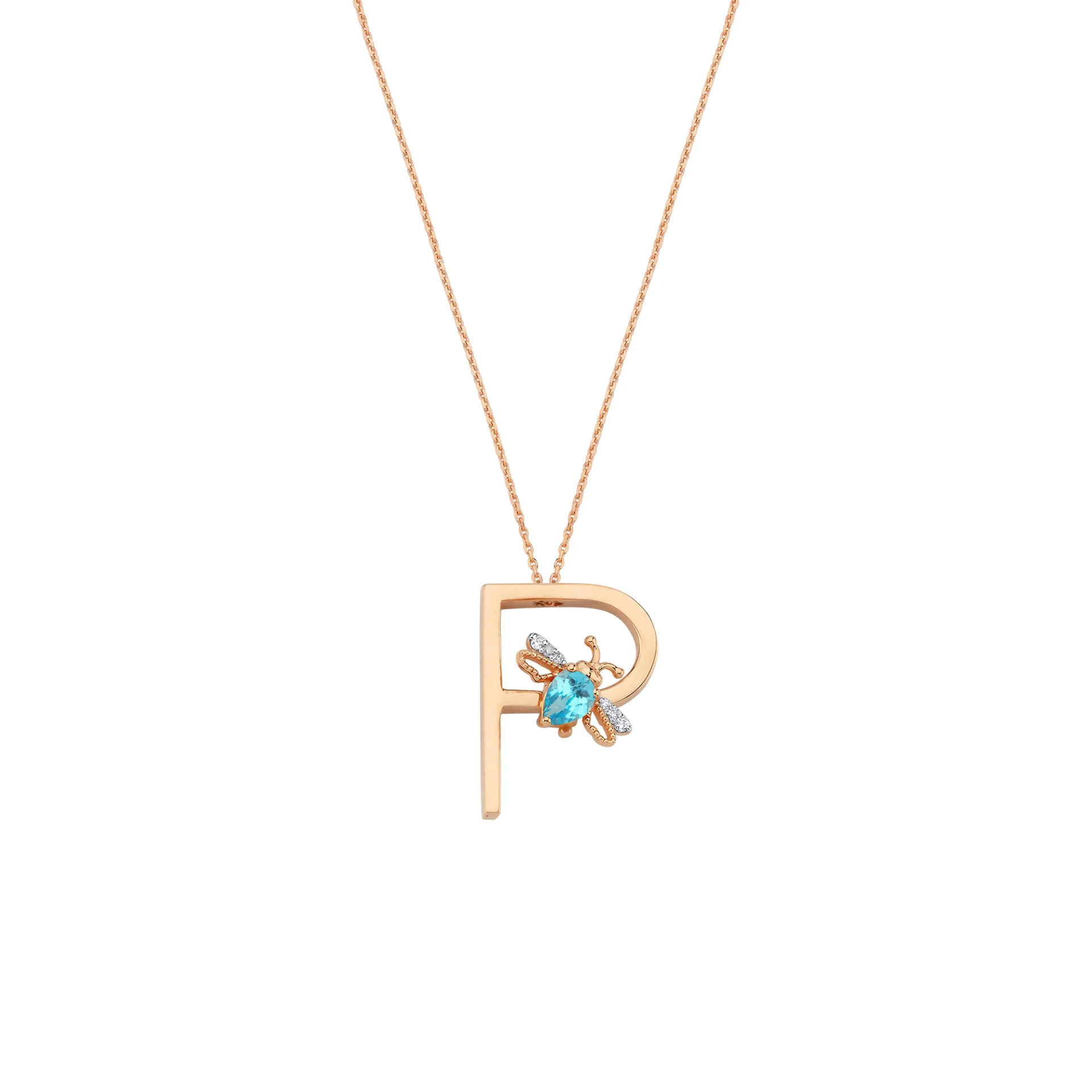 P Harf Mavi Topaz Pırlanta Kolye