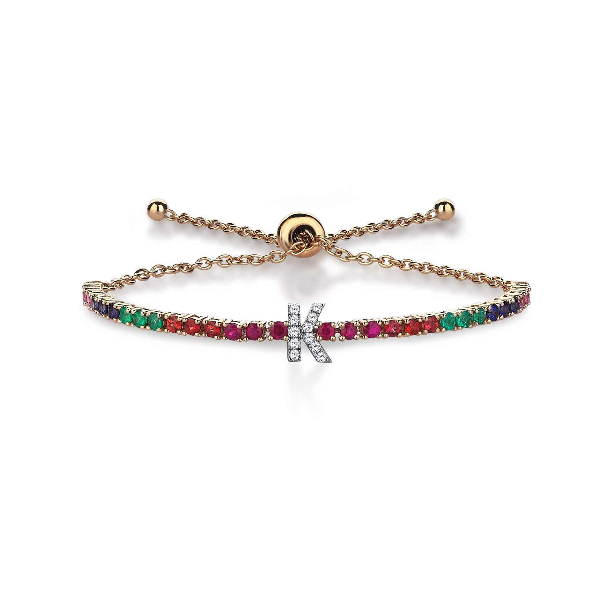 14 ayar altın Rainbow Pırlanta Harf Bilezik, gökkuşağının canlı renklerini yansıtan safir, zümrüt, yakut ve diğer değerli taşlarla süslenmiştir. Merkezde yer alan pırlanta kaplı. Merkezinde yer alan K harfi, kişisel bir dokunuş katarken, bileziğin zarif tasarımı her anınıza şıklık katıyor. Gökkuşağı, zorluklardan sonra gelen aydınlığı, umudu ve yeni başlangıçları simgeler.