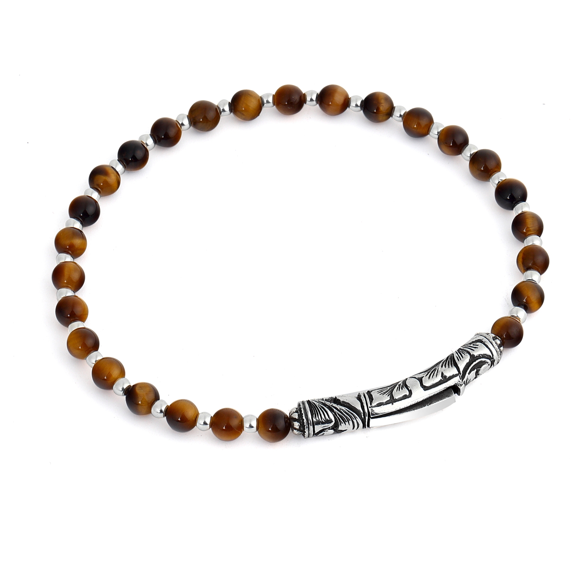 925 ayar gümüş, el oyması kalem işçilikli, 4mm kaplan gözü taşlı bileklik