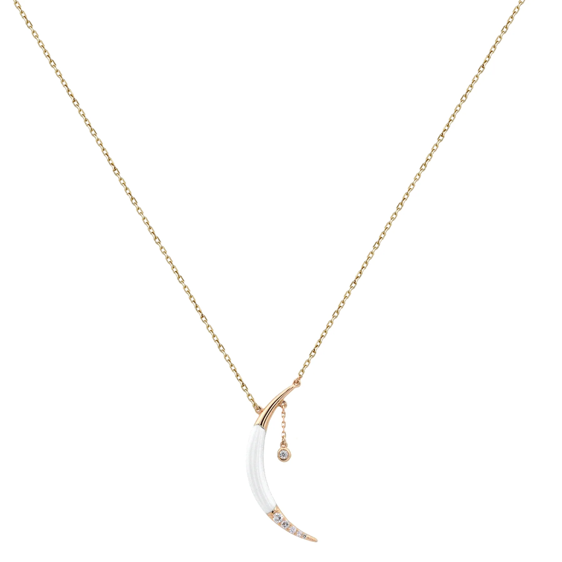 14 ayar pembe altın, beyaz mine ve pırlanta