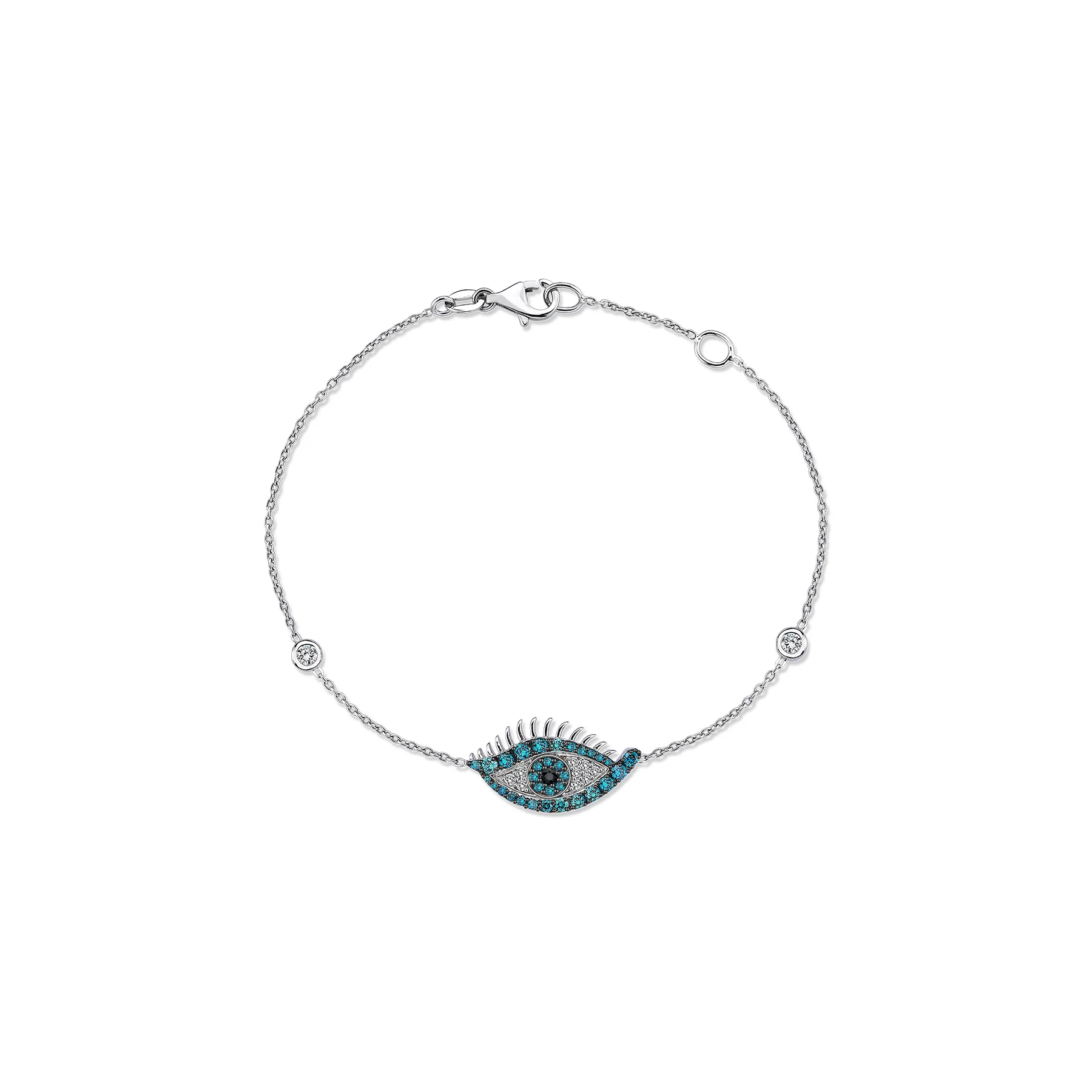 İkonik nazar bileziği, toplam 0,66 karat ağırlığında beyaz, siyah ve mavi pırlantalardan oluşan fütüristik bir göz motifiyle 18 ayar beyaz altından üretilmiştir.