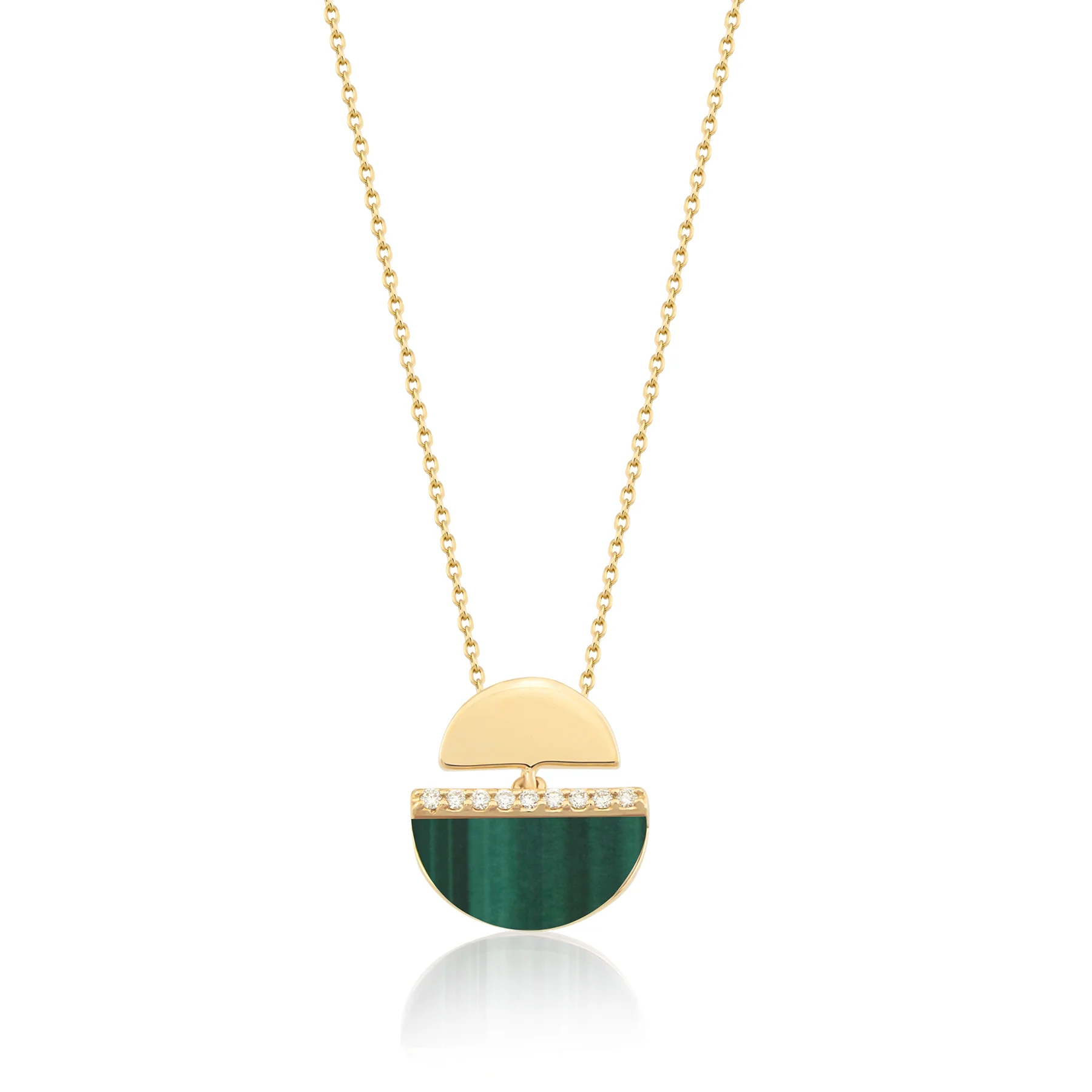 18 ayar sarı altından, canlı malahit ve ışıltılı pırlantalarla Reborn Malahit Kolye.
