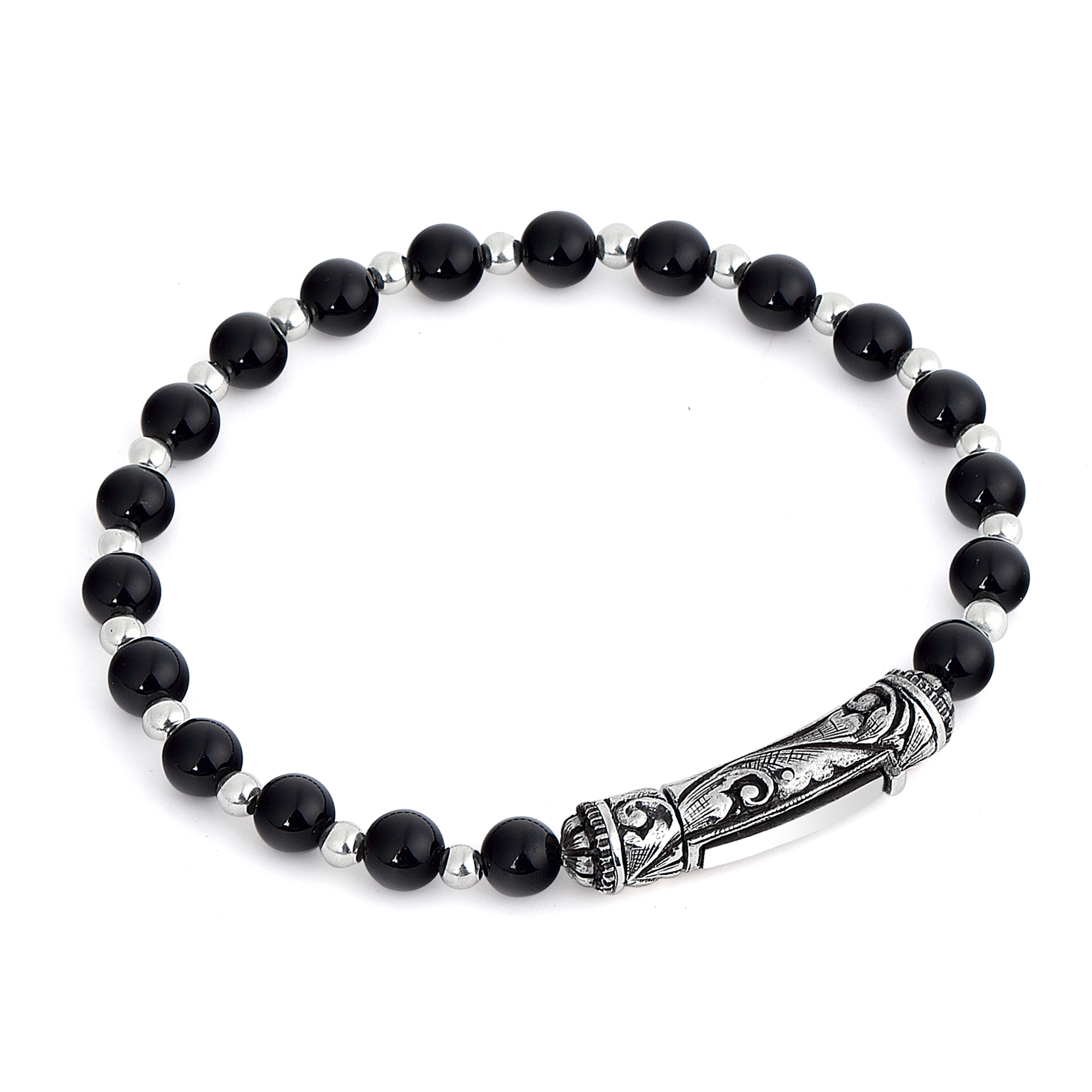 925 ayar gümüş, el oyması kalem işçilikli, 6 mm oniks taşlı bileklik